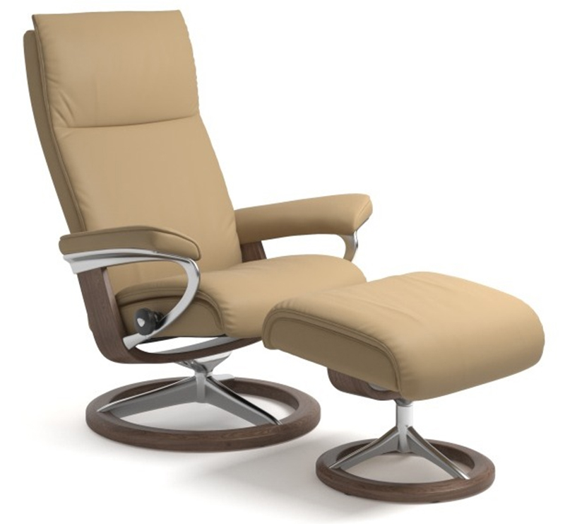 Recliner Chair and Ottoman - Our Stressless Aura Signature Paloma Sand Leather offers durability and a sensible price point