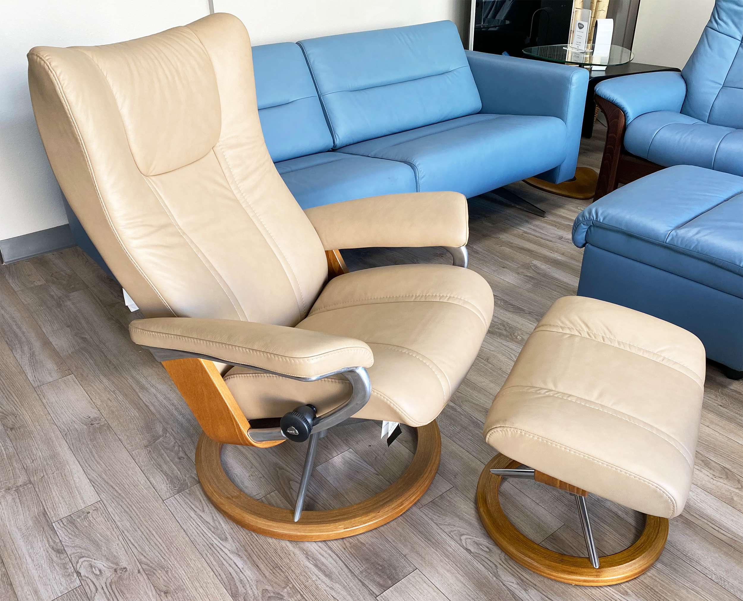 Stressless Wing Signature Chrome Base Paloma Sand Leather