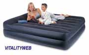 Raised Supreme Nylon AirBed Air Mattress - The convenience of a portable airbed with the comfort of sleeping on a raised platform. Plush, waterproof nylon flocking covers the mattress top. An indentation on the side helps grip fitted sheets. Dual chamber construction. The lower chamber functions as the box spring platform on a traditional bed, providing extra firmness and support. The upper chamber functions as a mattress and can be adjusted for level of firmness. The Queen sized mattress (approximately 60x80") is raised approximately 22" from the floor for convenience. The Mid-Rise (Queen is approximately 64"x82", Twin is approximately 40x80") is raised approximately 19.5" from the floor. Cozy nylon flocked fabric mattress top. Deflates completely for travel and storage. Includes duffel bag with shoulder strap. Weight capacity is approximately 600 lbs for the Queen Size. New Wireless Remotes, Backrests and Memory Foam Padded Airbeds now available. Electric Air Pump included on select models below. All sizes are approximate as inflation pressure and use will affect the overall size of these airbeds.