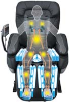 Full Body Air Massage System - A total of 33 air bags (that's 614 square inches of air massage!) work together, pressing and squeezing tired muscles, to relax multiple parts of the lower body. As they simultaneously inflate and deflate in varying patterns and speeds, the tension in your seat, hips, thighs, calves, shins and feet miraculously dissipates: