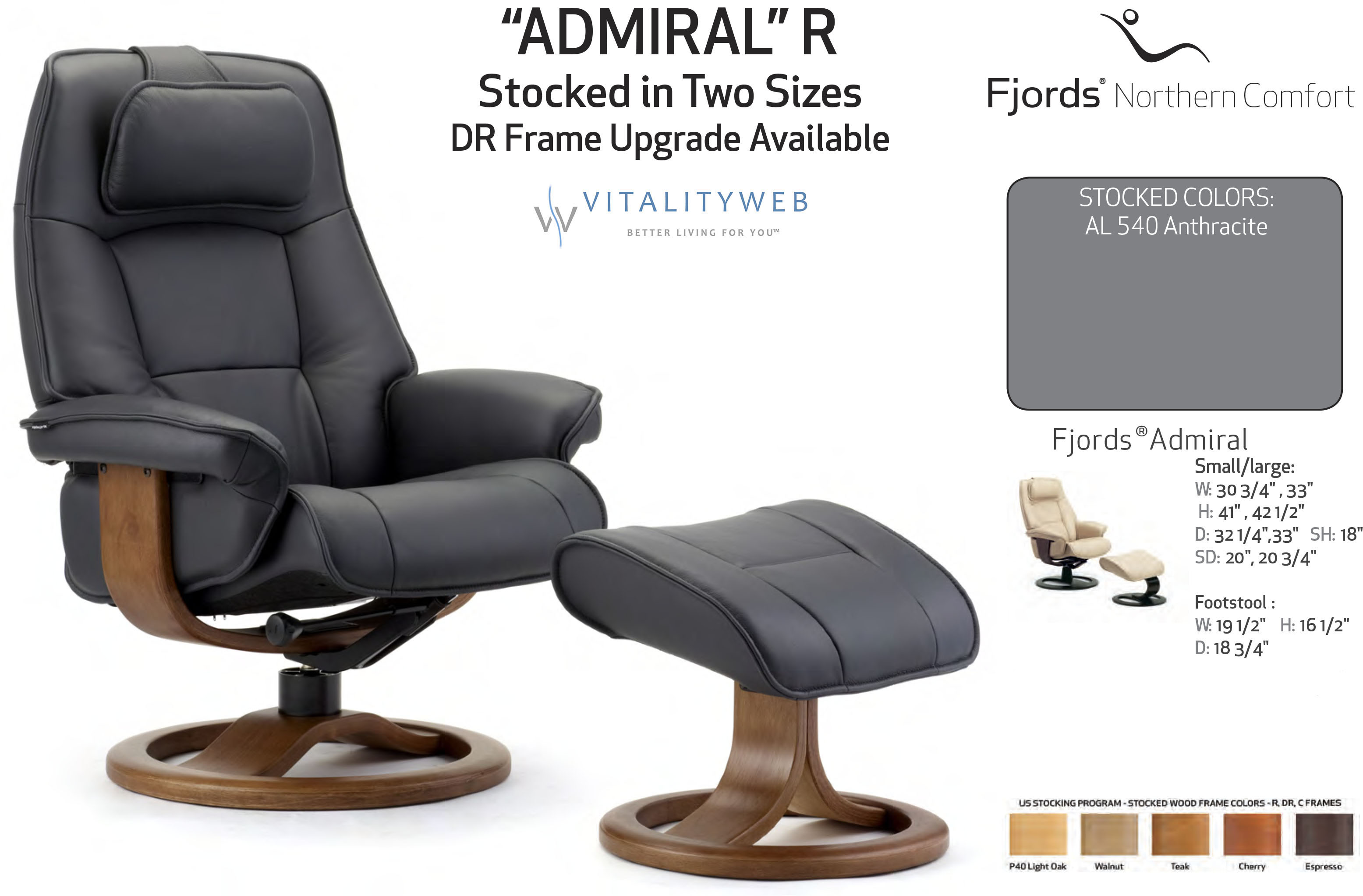 Fjords Admiral R Base Leather Recliner Chair and Ottoman Information