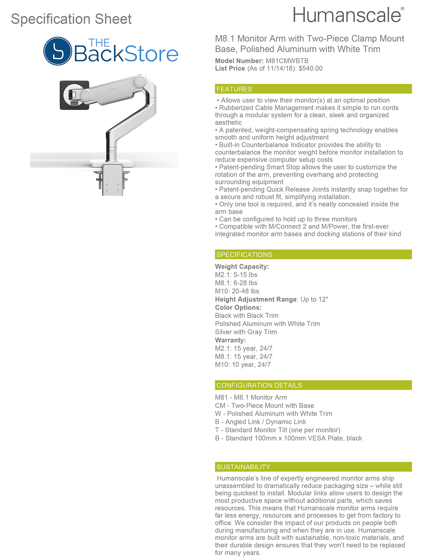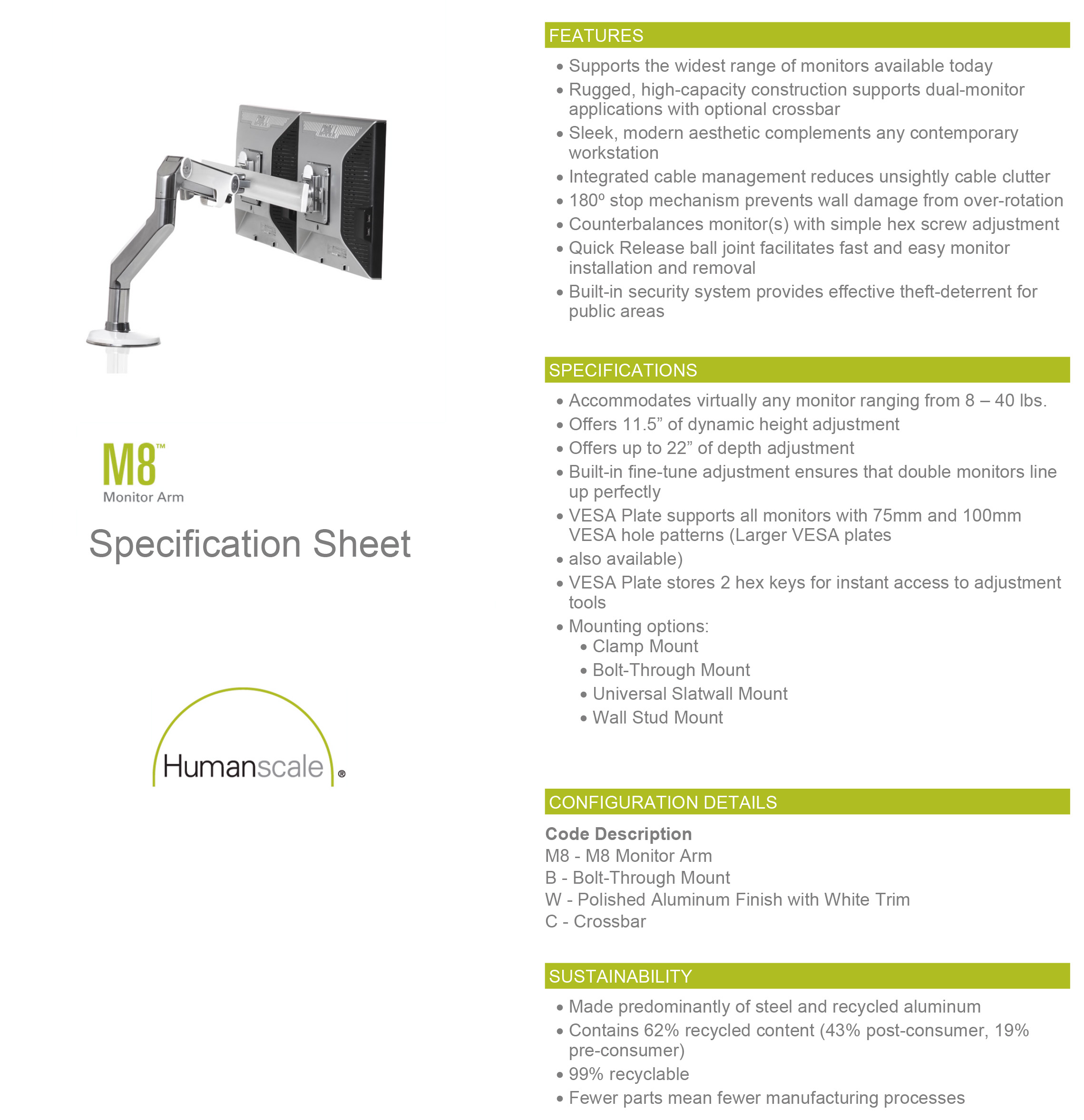 About Humanscale M8 Monitor Arm:
