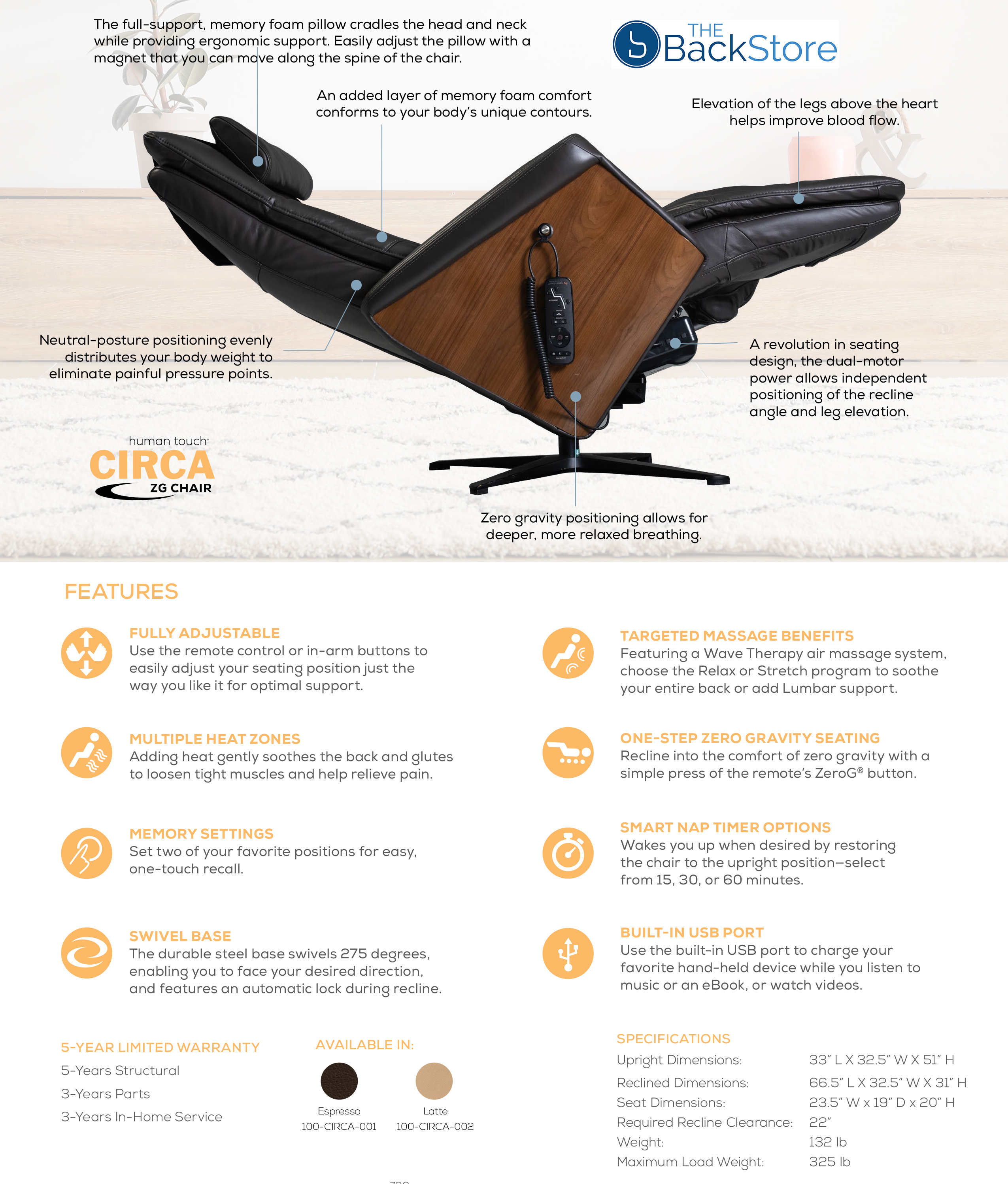 and 66.5"L x 32.5"W x 31"H Reclined