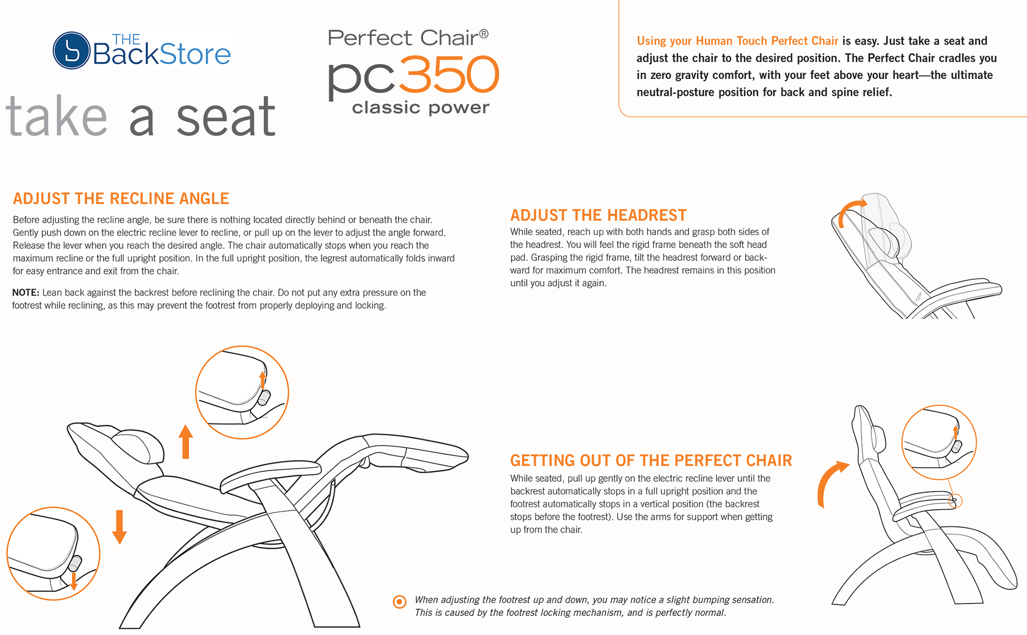 Human Touch PC-350 Classic Power Perfect Chair Zero Gravity Recliner Brochure