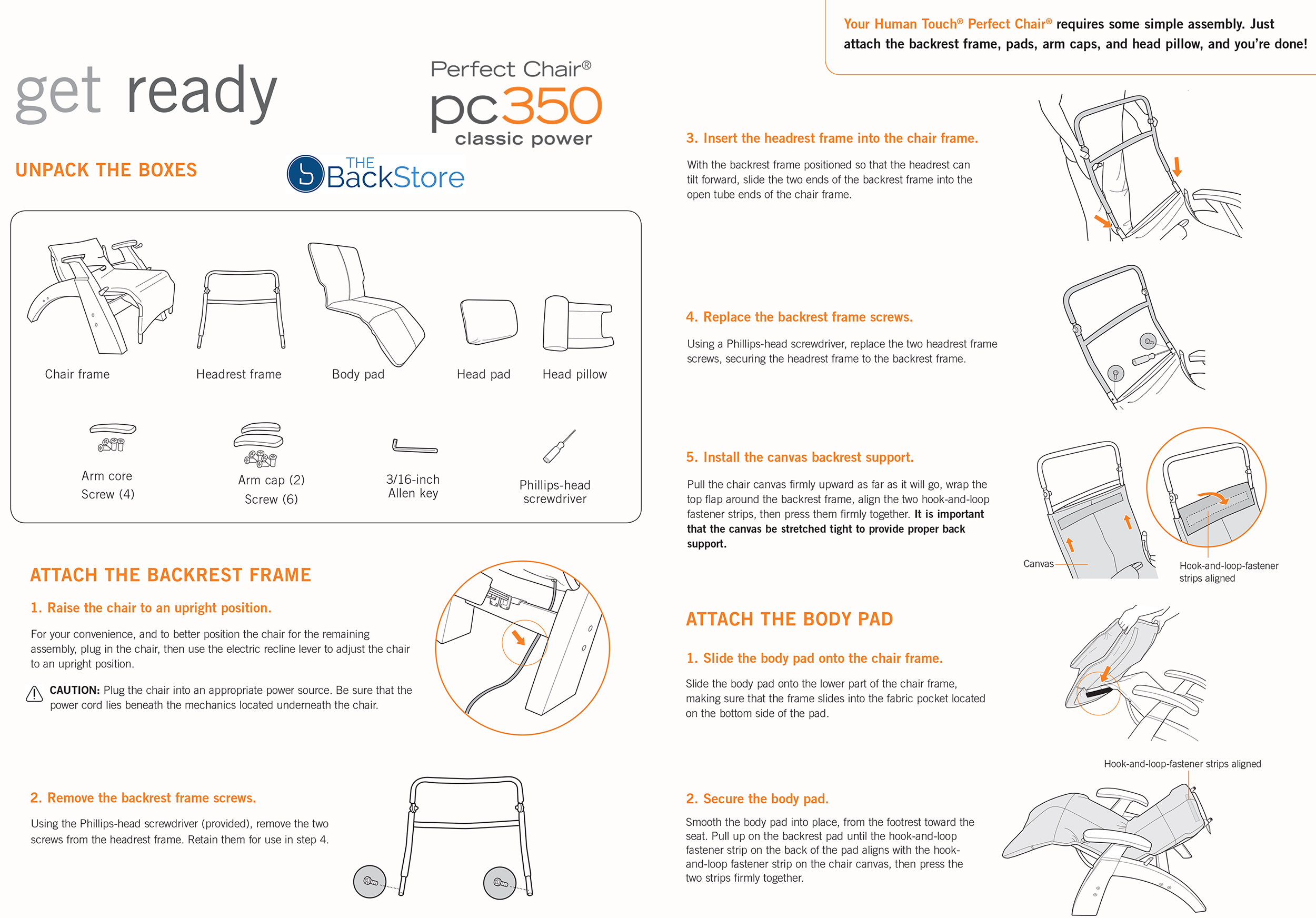 *WARRANTY INFORMATION: New Human Touch PC-350 Classic Power Perfect Chair Zero Gravity Recliners have a 3/2/1 Year Factory Limited Warranty. The New PC-350 Perfect Chairs come with a manufacturer's three-year limited warranty against Structural defects (Frame only - cosmetics are not covered). Parts are covered for two years from the original date of purchase. In Home Factory Service (All 50 US states and most major cities in Canada) is covered for one year from the date of purchase and can be extended with an extended warranty. Refurbished Massage Chairs have a 90 Day limited warranty for parts only. Chairs are packed for shipping and require minor assembly. Warranty is not valid for chairs shipped out of the United States and Canada. In-Home Service is only available in the US 50 states and most major Canadian Cities. Extended warranties are available on both New and Refurbished Massage Chairs.