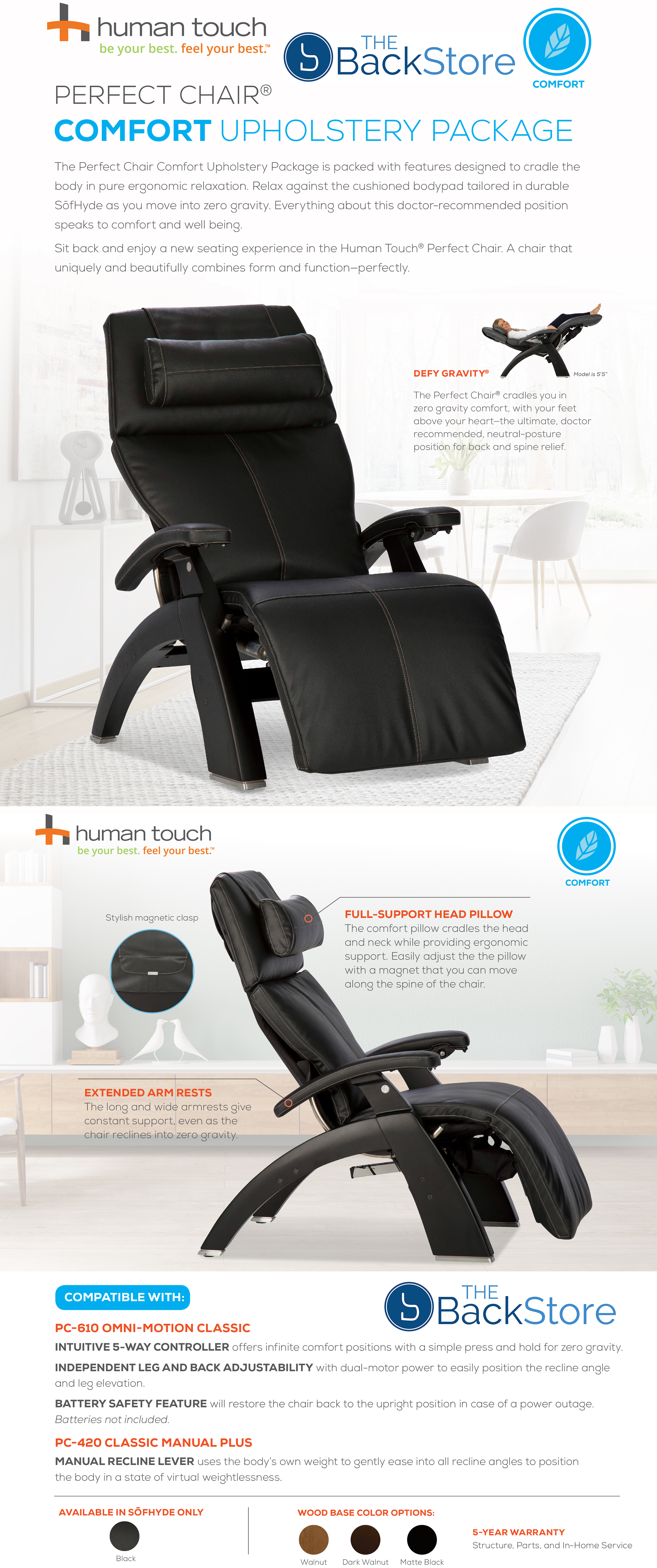 Perfect Chairs only. The zero gravity position cradles your back and elevates