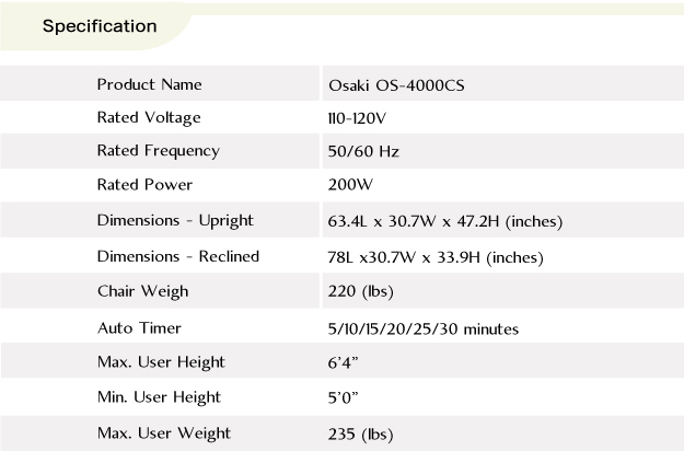 The Osaki OS-4000 CS has 6 unique massage styles: Kneading,